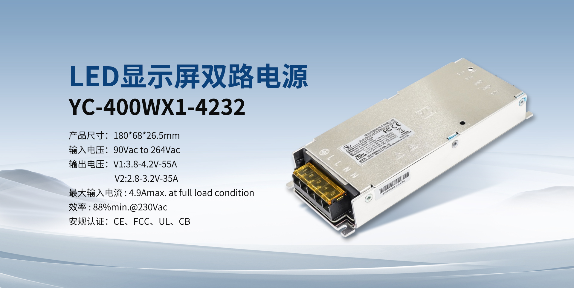 公司出品的電源,功率范圍涵蓋0W-1000W全系列,認(rèn)證齊全,有3C、CE、UL、FCC、CB、KC、PSE、RCM等認(rèn)證,廣泛用于LED顯示屏、工業(yè)設(shè)備、人工智能、智能裝備、車(chē)載應(yīng)用等領(lǐng)域,在全球市場(chǎng)獲得認(rèn)可。